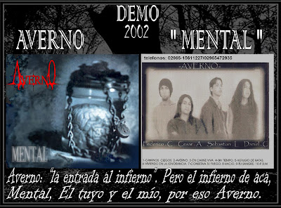 Ya hace rato que me contacte con los chicos de Averno y es una de las bandas de la patagonia que me intereso postear siempre en realidad desde que un amigo el " Mataco " voz de Cerpion me alcanzo un video para ver, y luego de haberlos visto y escuchado de soportes de HORCAS junto a Cerpion de pico truncado y Bastion de Caleta Olivia, me gusto la actitud y fuerza d e la banda haciendome recordar alguna banda de los 90 pero con mas trhash metal. Las comparaciones son odiosas por eso no les digo a que banda me hizo recordar .. .. .. \nn/ . A si es como despues de un tiempo Averno me hacerco algo mas de su info para conocer cual es su propuesta e historia de la banda , agradecido por el demo el cual me lo regalaron, 10 temas muy buenos y respetable presentacion. AGRADECER A NATACHA Y A FEDE Y ALOS DEMA S INTEGRANTES DE AVERNO.